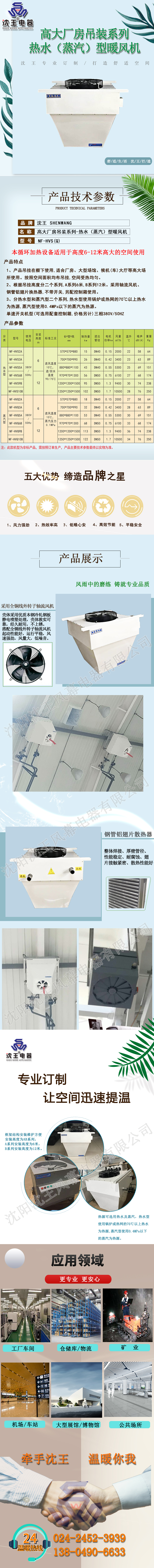 高大型车间厂房吊装系列热水(蒸汽)型暖风机NF-HVS(Q)